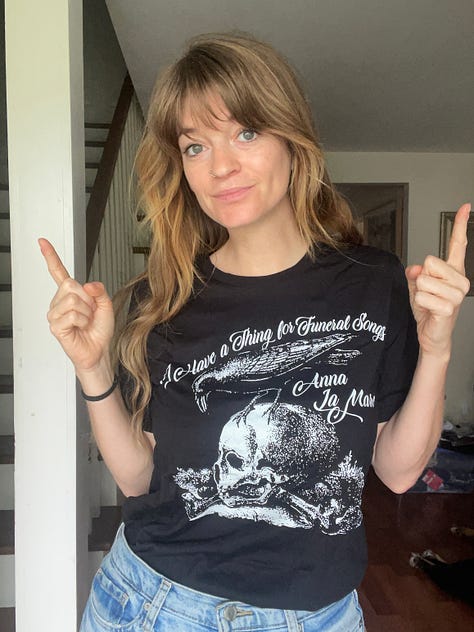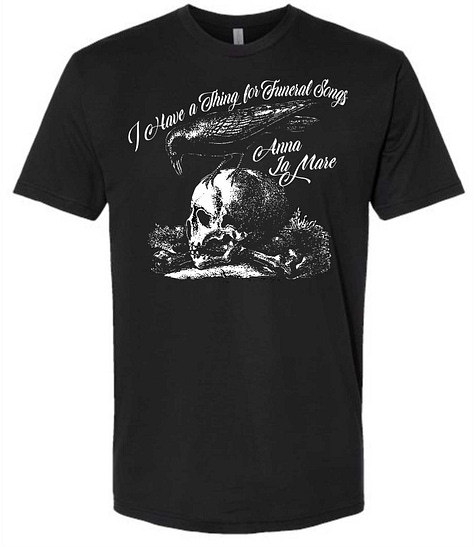 “I Have a Thing For Funeral Songs” unisex tee , black = $40
